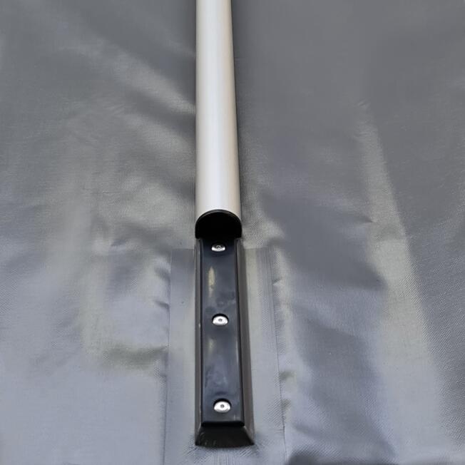 Die Lieferung der grauen aufblasbaren Poolabdeckung erfolgt inkl. Bodenanker für die Holzbefestigung oder für die Befestigung auf Stein und Spannseil.