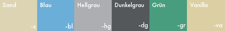 • Optional: dunkelblau RAL 5013 & antrazit RAL 7016