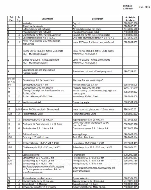 Ersatzteile Gegenstromanlage BADU-Jet Classic 101 Varianten ab 1,- € inkl. 19% MwSt., zzgl. Versandkosten ***** (16)