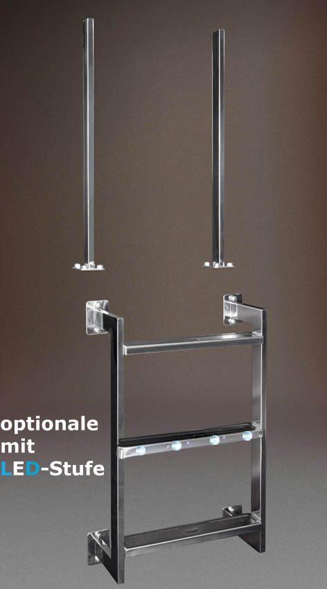 Geteilte Edelstahlleiter Tina aus V4A 3 Varianten ab 307,- € inkl. 19% MwSt., inkl. Versandkosten für Deutschland