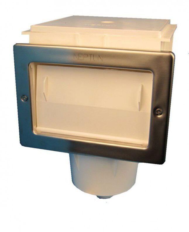 Die VA-Abdeckblende ist passend für den Skimmer Neptun. Auch später nachrüstbar macht sie einen edlen Eindruck im Becken.