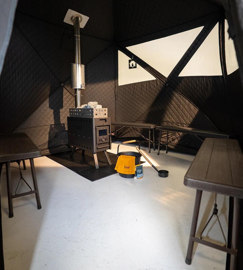 Bast Saunazelt Björk deluxe, 2 x einstufige + 1 x zweistufige Bank 3.595,- € inkl. 19% MwSt., inkl. Versandkosten für Deutschland